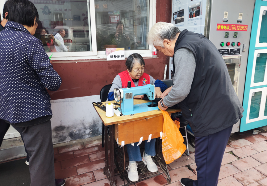 缝补衣服的角落同样忙碌而温馨。志愿者坐在缝纫机前,认真“款待”每一件需要缝补的衣服,不放过任何一个细节,让原本有瑕疵的衣物重新变得完整。小小的修补,不仅修复了衣物,温暖了老人,更传递了勤俭持家的传统美德。