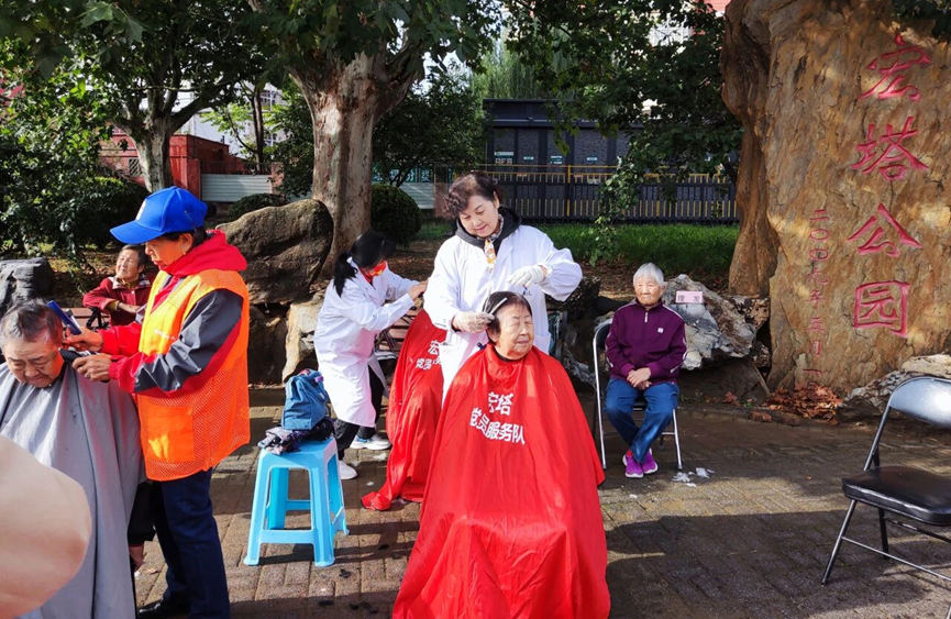 理发区,志愿者手持理发工具,动作娴熟而轻柔。他们根据每位老人的发型需求和脸型特点,精心修剪着头发。随着剪刀的清脆声响,原本有些凌乱的头发变得整齐利落,精神面貌也焕然一新。