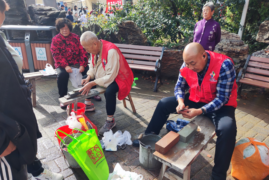 磨刀处,志愿者全神贯注地打磨着菜刀和剪刀,直到刀刃变得锋利。每磨好一把刀,他们还会仔细检查刀柄是否牢固,确保刀具能够正常使用。拿着磨好的刀具,老人们纷纷称赞志愿者们的细心和耐心。