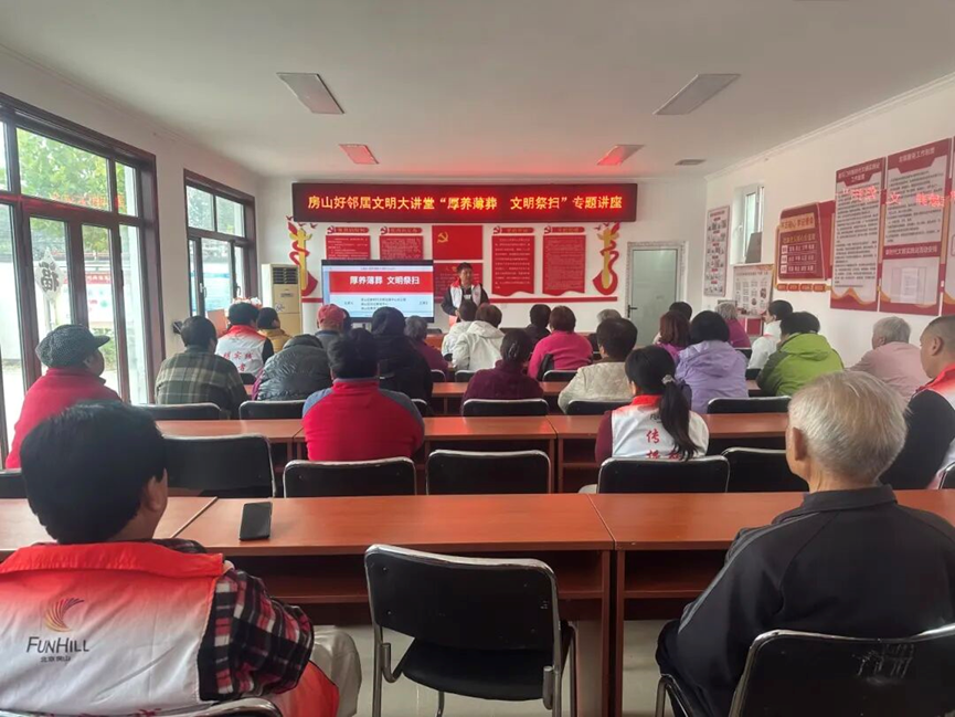 为进一步推进移风易俗、弘扬文明新风,助力乡村振兴战略深入实施,倡导文明丧葬礼仪,树立厚养薄葬孝道理念,10月24日,房山区大石窝镇在前石门村新时代文明实践站组织开展“厚养薄葬 文明祭扫”专题讲座,30余名村民参加。