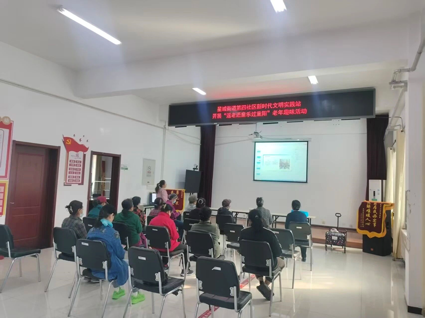 房山区星城街道第四社区精心组织“返老还童乐过重阳”老年趣味活动。活动以重阳节为核心主线,授课老师通过生动形象的讲解、互动性十足的趣味问答以及充满年代感的老照片展示,向老人们细致介绍了重阳节的起源、登高赏秋、插茱萸、吃重阳糕等传统习俗,让老人们在重温传统节日文化的同时,唤起了对过往岁月的美好回忆。