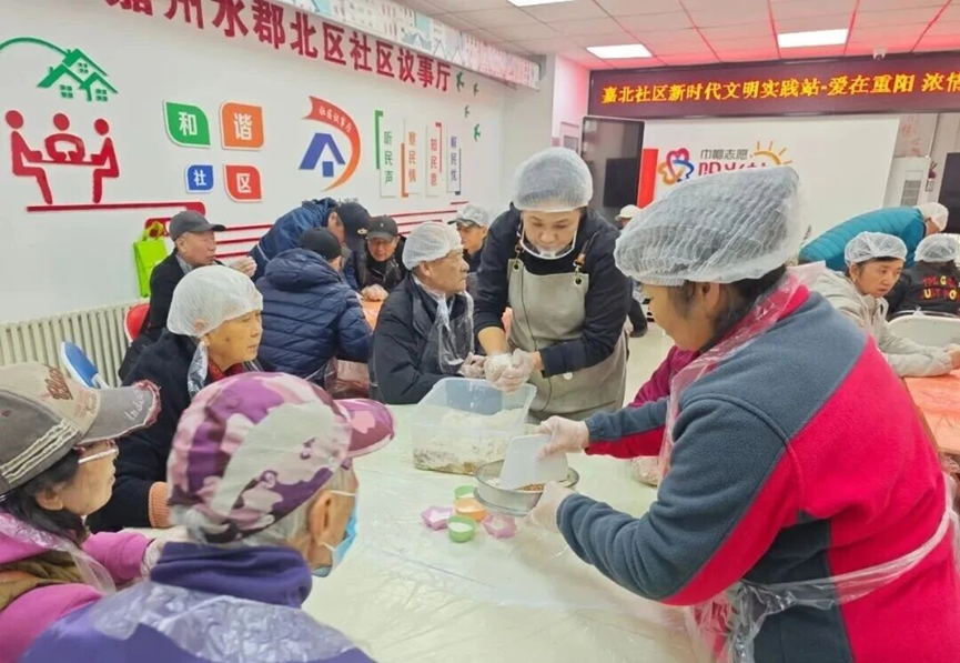 嘉州水郡北区社区、熙景嘉园社区举办了重阳糕制作活动。活动中,专业老师仔细讲述有关重阳节的传统习俗与文化内涵,并现场示范从食材配比到点缀装饰的制作步骤。老年居民们围在一旁认真倾听,分组动手实践。筛面粉、压模具、摆果料,彼此交流、相互帮助,现场一片其乐融融。经过半个多小时的忙碌,一盘盘造型精致、香气扑鼻的重阳糕出炉。大家捧着自己亲手制作的重阳糕,互相品尝、交流心得,现场温情满满。此次活动让居民体验了传统美食制作乐趣,传承了节日文化,拉近了邻里距离。