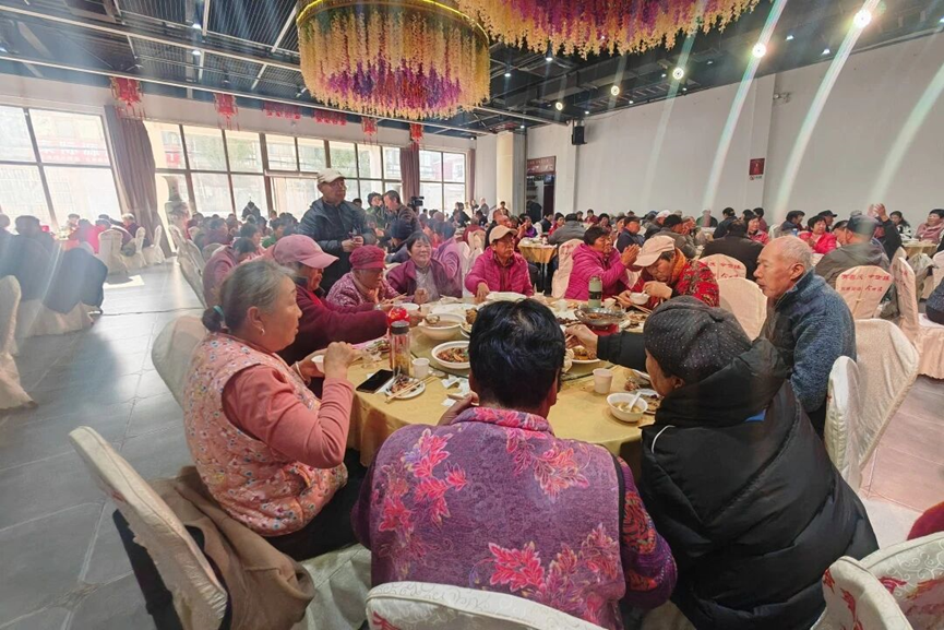 百叟宴的席面更是讲究,延续了中国传统的十二八席,由六碟、六小碗和八个大碗组成。六碗六碟寓意六六大顺、吉祥如意、月月进财,八大碗暗含四平八稳之意,每一道菜都承载着美好的祝福。超500名老人欢聚一堂,一边品尝可口饭菜,一边叙友情、谈健康、话家常,尽享节日欢乐。