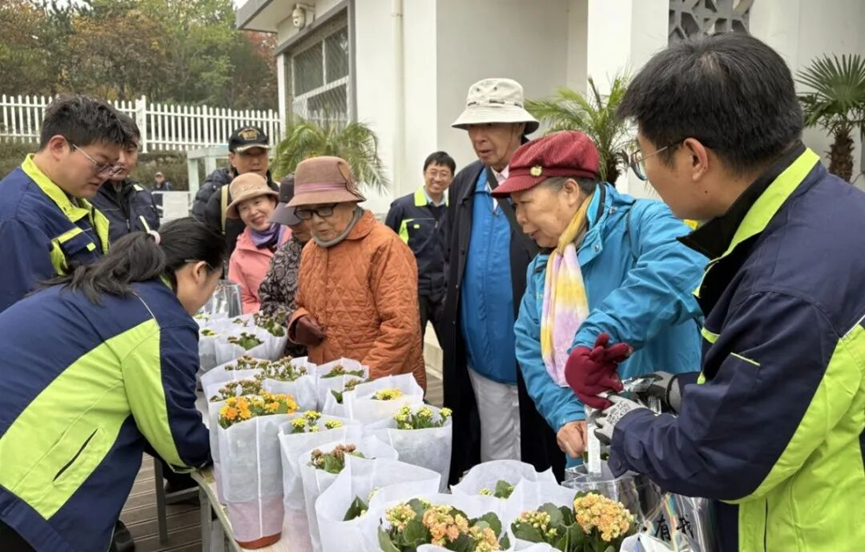 岁岁重阳,今又重阳。燕山公园园艺驿站举行“长寿花开贺重阳”的暖心活动。活动现场,驿站工作人员早早备好一盆盆生机勃勃的长寿花,期待着前来晨练、休憩和赏花的老人们,准备把最真挚的节日祝福,通过这一盆盆鲜花送到他们手中。桌上的长寿花绿意盎然,肥厚的叶片间缀着星星点点的花苞,有粉嫩的、桔黄的,还有香槟色的,仿佛也在悄悄酝酿着对老人们的美好祝福。工作人员热情地迎上陆续聚拢的老人,一边为他们递上花苗,一边叮嘱养护的方法。那关切的眼神、温和的话语,如同一股暖流,流淌在老人们的心间。78 岁李大爷接过花忍不住跟身边的老伙计炫耀:“你看这公园驿站多周到,知道咱们老人就爱养点花花草草,这花叫长寿花,听着就吉利!”
