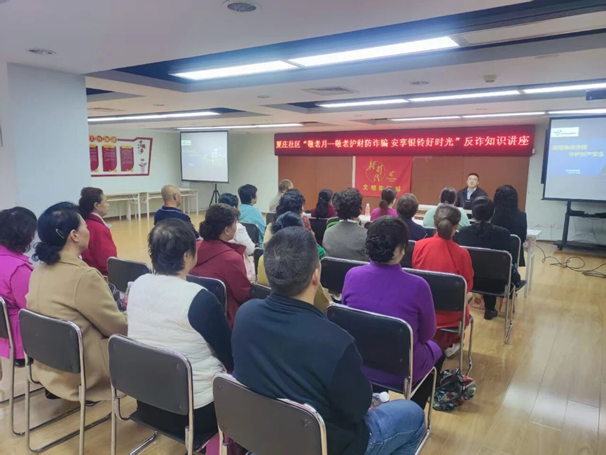 10月17日,社区围绕“敬老护财防诈骗 安享银龄好时光”主题,结合重阳节日氛围开展反诈知识讲座,向老年人普及当前常见的电信诈骗方式,以及正确的应对方式,旨在提升老年人识骗能力,构建社区反诈防线。