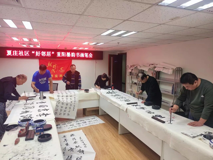 10月21日,社区组织辖区中老年书画爱好者开展“好邻居”重阳墨韵书画笔会,现场围绕重阳节主题创作书画作品,表达对美好生活的珍惜及对重阳佳节的祝福。本次书画笔会既满足了老年人“老有所乐、老有所为”的需求,也通过书画艺术传递节日祝福与对传统文化的认同。