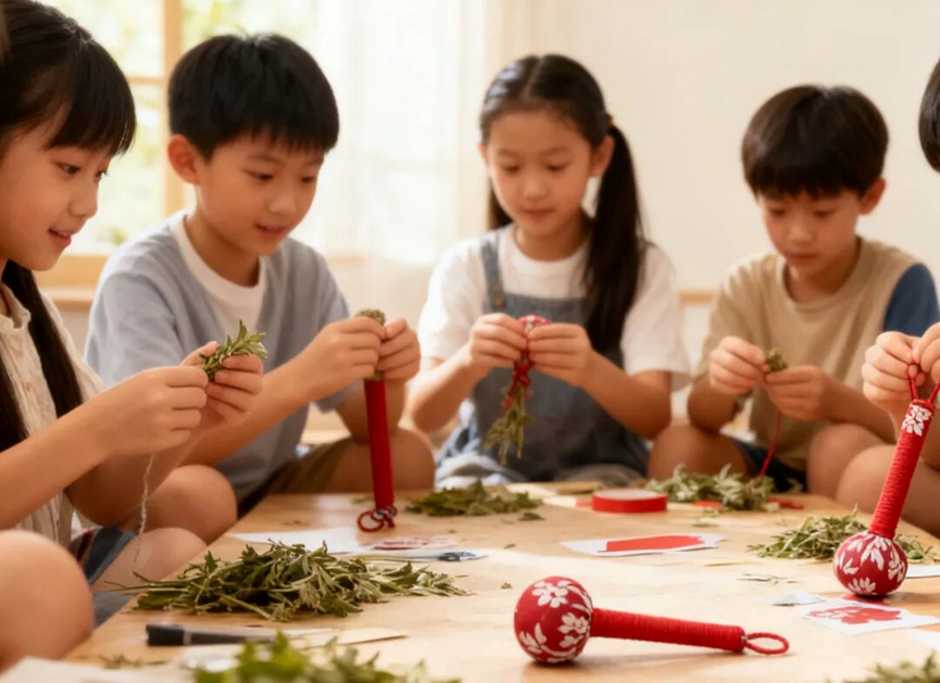 沉浸式制作艾草锤更是“暖心加分项”!博物馆老师全程指导手作,成品赠长辈,以捶递孝,传承敬老美德。