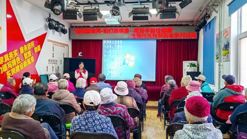 房山区东风街道北里社区以“智慧助老”为核心,在社区活动室举办“金秋敬老月 拍打话健康——用双手留住健康”主题讲座,近50名社区老年人参与,在实操互动中分享养生知识、学习健康技巧。