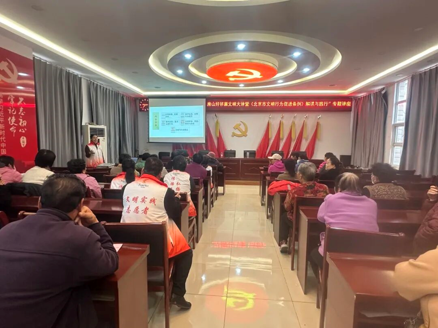 活动依托“房山好邻居文明大讲堂”师资力量,由区成教中心张宏梅老师进行主题宣讲。老师结合生活实例,以通俗易懂的语言解读《条例》中有关垃圾分类、文明养犬、公共秩序等与村民生活密切相关的条款,并通过互动问答加深村民对《条例》的理解。宣讲中,张老师还倡导群众要遵守法律法规、践行移风易俗、恪守文明行为规范,鼓励大家诚实守信,积极参与社会公德、职业道德、家庭美德、个人品德建设,主动加入文明行为宣传队伍,共同抵制不文明现象。