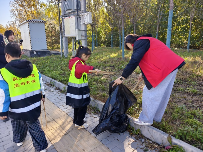 活动中,家长与孩子们手持清洁工具,沿着小区周边主干道、绿化带等区域,捡拾散落的塑料袋、纸屑、烟头等垃圾。孩子们分工协作,不放过任何卫生死角;家长们耐心讲解垃圾分类知识,以身作则传递环保理念。小小的身影穿梭在小区各个角落,吸引了部分居民主动加入清洁队伍。