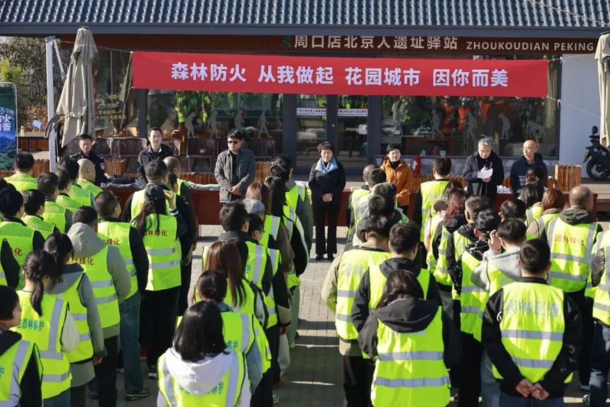 为深入贯彻落实习近平生态文明思想,全面加强森林防火工作,深入推进森林防火宣传教育,促进党建工作与园林绿化工作深度融合,充分发挥党组织战斗堡垒和党员先锋模范作用,助力首都花园城市建设。在森林防火期到来之际,房山区园林绿化局在周口店北京人遗址驿站前举办“森林防火 从我做起 花园城市 因你而美”主题宣传活动,同时组织百余名党员干部开展“党旗引领践初心 党员净山在行动”主题党日活动,正式拉开全区2025-2026年度森林防火宣传月序幕。
