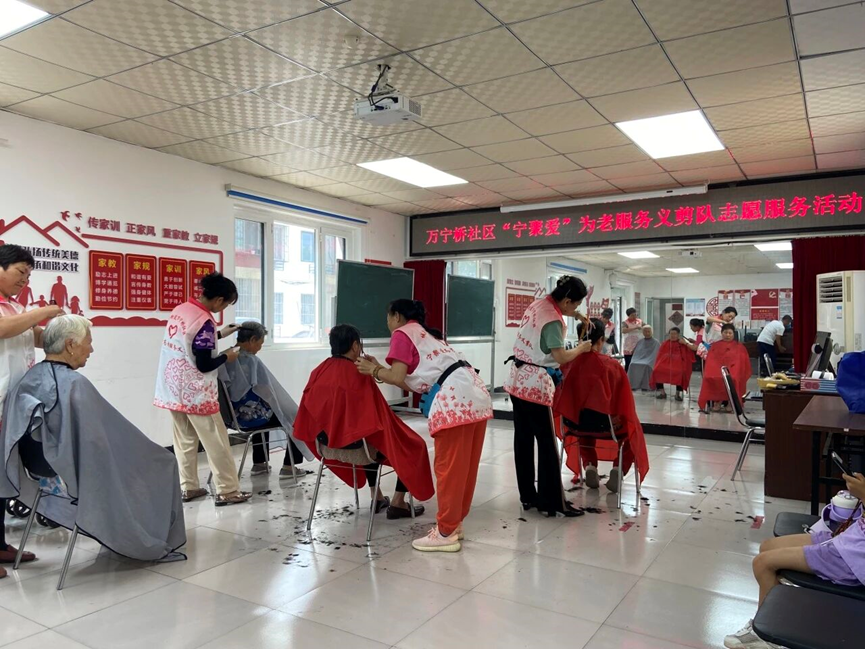 社区成立的“宁聚爱”为老服务义剪队自2023年开始,培育发展了理发志愿者成员8名,人均参与志愿服务时长近百小时。这支队伍每月定期为居民提供免费理发服务,同时针对孤寡、高龄、行动不便的老人提供上门理发,为缓解社区老人理发不便问题作出了积极贡献,获得了社区群众的肯定。他们在志愿服务中真诚服务、无私奉献,从定期理发到上门服务,从一点一滴到积少成多,让老人们真切感受到来自社区党委和志愿服务的温暖。