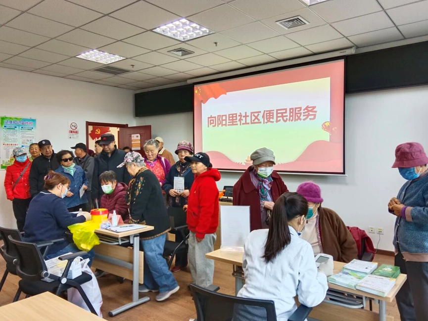 11月10日上午,房山区向阳街道向阳里社区于综合楼一层举办便民服务活动。活动内容丰富多样,涵盖免费测血糖血压、免费理发以及提供护国寺小吃等项目,旨在满足社区居民的日常生活需求。