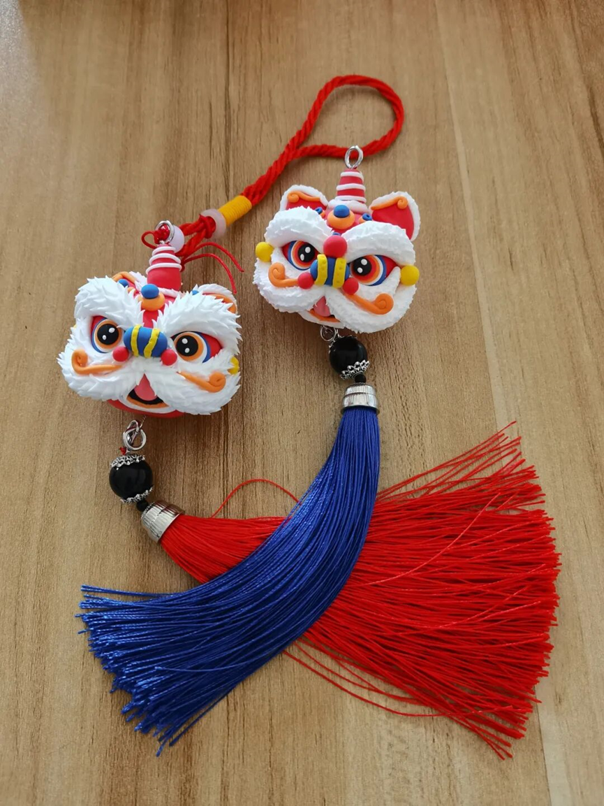 学员们带着浓厚兴趣投入创作,桌上的彩泥在指尖翻飞流转。有人专注打磨狮头轮廓,力求圆润饱满;有人精心搭配色彩,红色配金色尽显喜庆,黄绿撞色活泼亮眼;遇到流苏固定不稳、五官不对称等问题时,大家主动向老师请教、与同伴交流经验。经过一番精心雕琢,一件件独一无二的醒狮车挂陆续完工,圆滚滚的造型搭配飘动的流苏,每一件作品都凝聚着学员们的巧思与热爱。学员们捧着自己的成果相互展示,脸上满是藏不住的成就感与喜悦。
