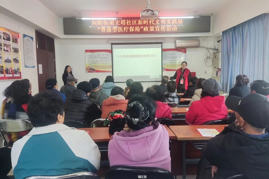 为切实提升辖区居民对普惠性医疗保险政策的知晓率和参保率,让这项民生保障政策真正惠及千家万户,近日,房山区向阳街道宏塔社区新时代文明实践站开展普惠性医疗保险政策宣传活动。