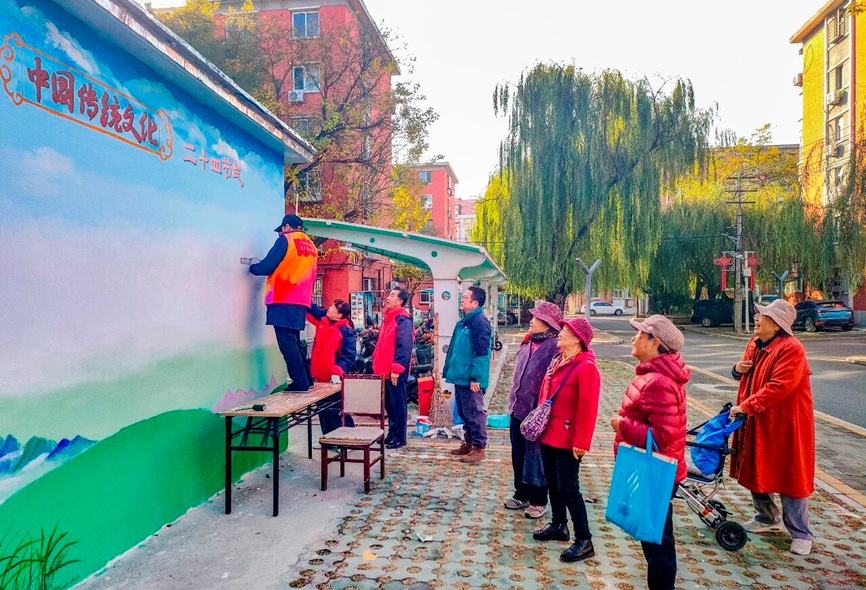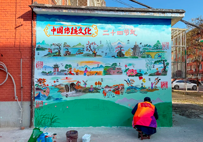 向阳街道宏塔社区的必经之路,一面主题彩绘墙惊艳出圈!二十四节气的古韵雅趣与燕山本土风情交相辉映,既以斑斓色彩扮靓社区街巷,更搭建起居民展露才艺的文化窗口,如今已成邻里争相打卡的“网红地标”。