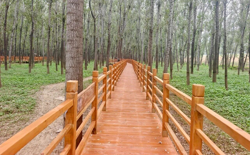 针对村东道路狭窄、交通事故频发问题,小营村在广泛听取群众意见后决定在村东公园内规划建设一条木栈道。方案上报后,良乡镇党委高度重视,实地考察并征求区园林绿化局指导意见,最终在林间建成800米长、1.5米宽木栈道,既保障了村民通行,又最大限度保护了林木。