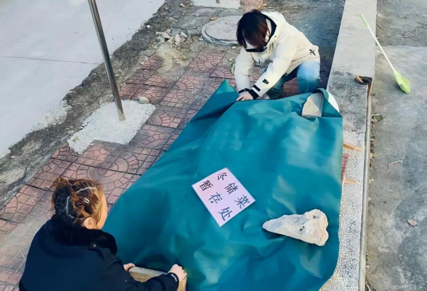 随着北京冬季气温持续走低,社区居民露天码放的冬储蔬菜存在冻损风险。为应对这一问题,街道迅速调配防寒布,社区工作人员逐楼逐院进行统一苫盖,不仅保障了蔬菜的新鲜度,更让社区环境变得整洁有序。