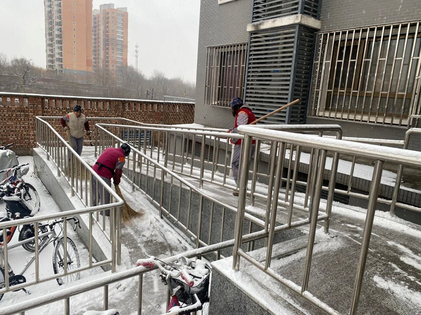 为保障辖区道路安全畅通,房山区向阳街道办事处迅速启动应急预案,第一时间组织机关职能科室、社区、物业人员、党员志愿者、热心居民等多方力量,共同开展扫雪铲冰工作,为居民清扫出一条条“平安路”和“温暖路”。
