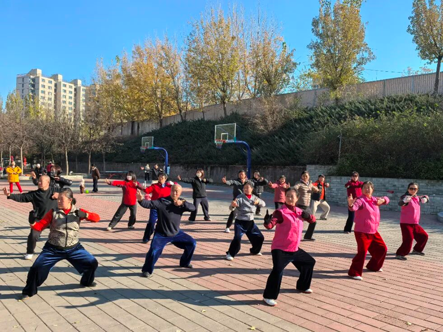 全民健身八段锦公益课堂上,志愿者从基础动作拆解、呼吸配合要领等方面细致教学,兼顾初学者与有基础的居民,让大家轻松掌握简单有效的养生健身方法。