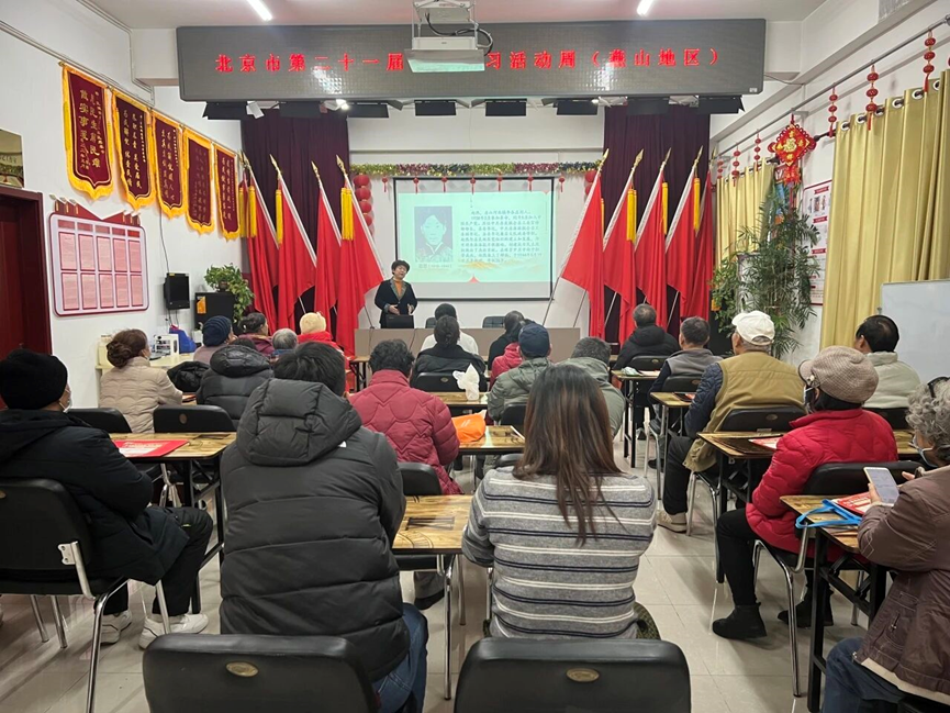 12月10日,房山区星城街道第二社区开展北京市第二十一届全民终身学习活动周主题活动,特邀姜亚芳老师讲授《品读红色诗歌,赓续房山红色血脉》主题课程。