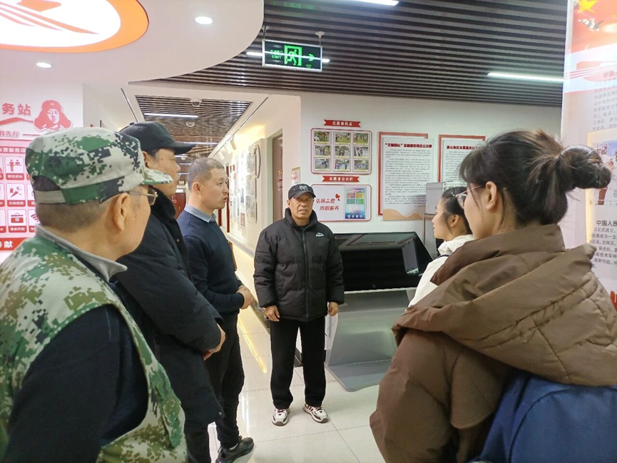 在交流环节,研究生们围绕志愿服务活动与工作人员展开深入交流。据悉,辖区“首都老兵”志愿服务队由退役军人自发组建,队员们带着军人的本色与担当,活跃在政策宣讲、社区治理、应急救援、敬老爱幼等多个领域:他们在文明城区创建中清理楼道堆物,在防汛备汛时巡查排险,在节假日为独居老兵上门送温暖,用实际行动诠释“退役不褪色,建功新时代”的誓言。同时还了解到,近年来服务站深化与驻区部队共建,组织开展 “重温军营生活 追寻青春记忆”主题活动,通过队列训练、军礼规范学习,唤醒老兵们的军旅记忆,老兵们也借此契机分享峥嵘岁月里的奋斗故事。