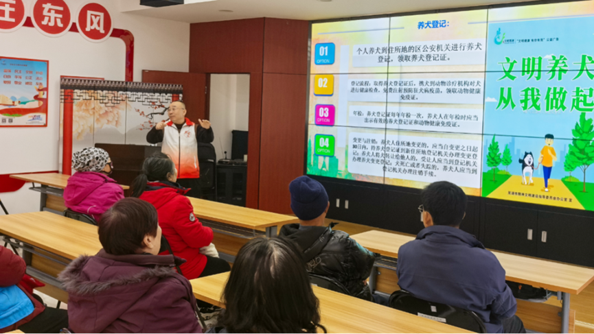 随着居民生活水平的提高,养犬已成为许多家庭的生活方式,但遛狗不牵绳、随地排泄、吠叫扰民等问题,也成为了影响社区环境卫生和邻里关系的“痛点”。为进一步规范辖区养犬管理,引导居民文明养犬、科学养犬,营造人宠和谐的社区环境,近日,房山区东风街道新时代文明实践所开展了“关爱宠物 做文明养犬人”主题宣传活动。