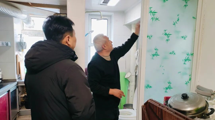 社区工作人员当即与网格长赶往史大叔家中,只见卫生间顶棚水渍斑驳,霉斑点点,漏水问题已持续困扰老人许久。据史大叔讲述,此前物业曾上门查看,提出需拆除部分隔板才能定位漏水点,但拆除与恢复隔板较为繁琐,维修事宜就此搁置,史大叔于是向社区“我来办”工作站寻求帮助。