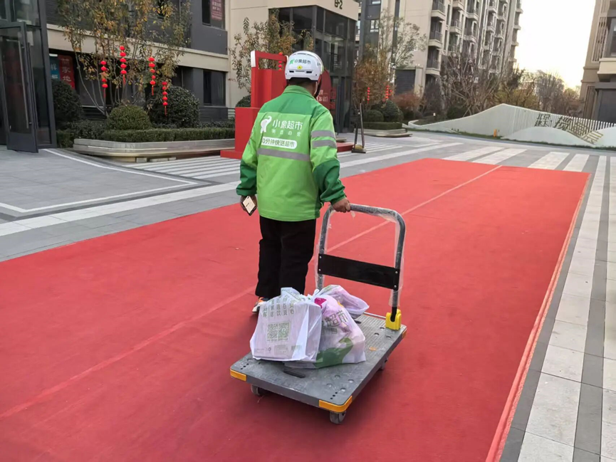 “扛两桶水,得歇两回才能送到。”小象超市的送货员小张最近常发愁——建邦·揽星苑实行人车分离管理,电动车不能进小区,遇到居民购买米面油、家电等大件商品,只能靠肩扛手提去送货。一次送一组饮用水到高层,他累得汗流浃背,送达时还得向顾客道歉:“不好意思来晚了,实在太沉了……”