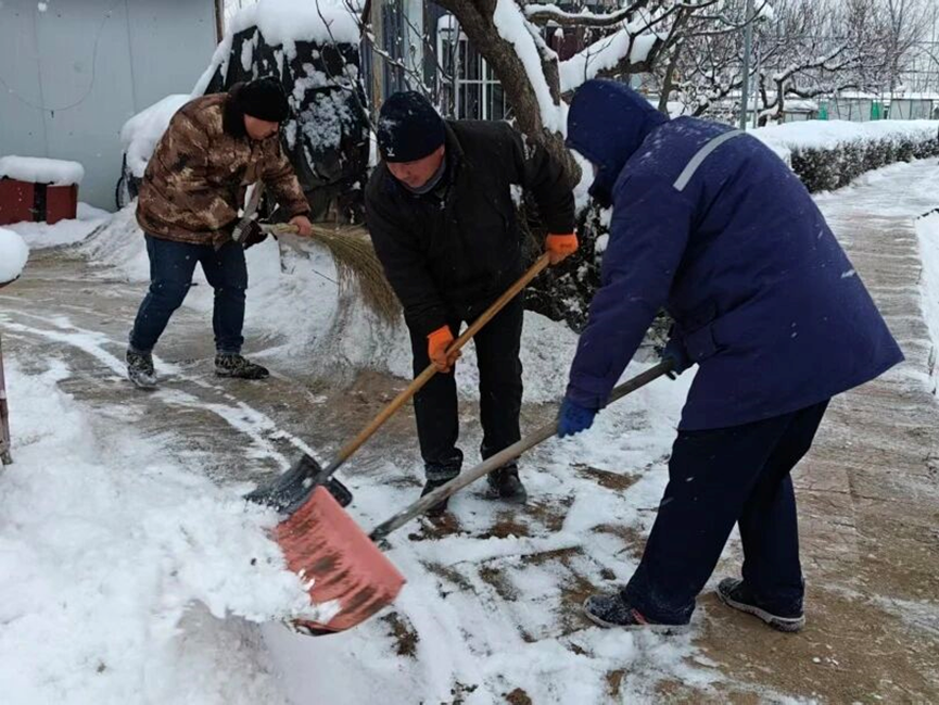 行动中,镇村干部率先垂范,党员志愿者亮明身份,聚焦辖区主干道、背街小巷等关键点位集中攻坚。大家手持铁锹、扫帚、铲雪板等工具,分工协作、默契配合,铲冰除雪、清运积雪,尽管寒风凛冽、雪花纷飞,但所有人干劲十足,脸上洋溢着奋斗热情,忙碌的身影在白雪映衬下,成为雪天里一道亮丽的文明风景线。