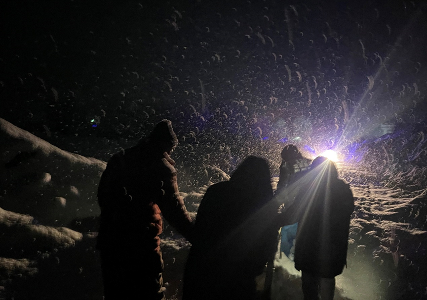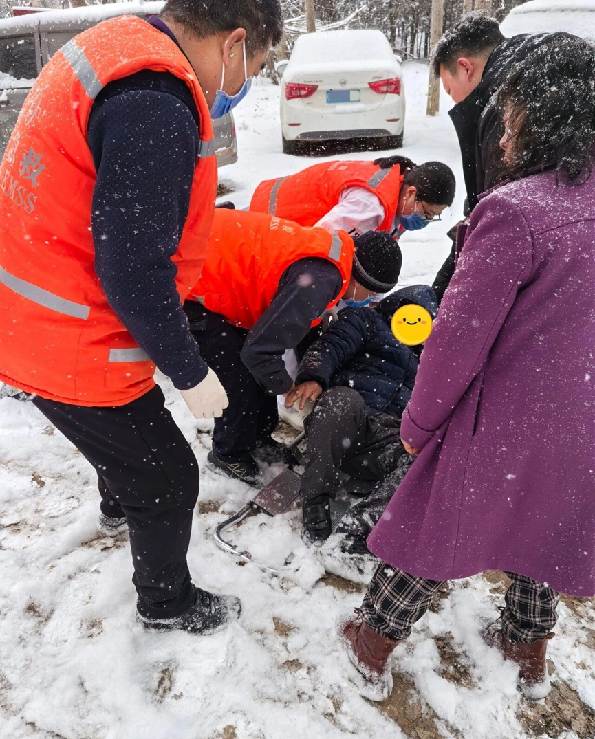 “走!”三人毫不犹豫地推开车门,扛起担架,深一脚浅一脚地向患者家中跋涉。途中,隗轩不慎滑倒,迅速爬起继续前行。见到浑身覆雪的急救人员,疼痛中的丁女士眼含热泪:“这么大的雪还来救我……”王新颖一边安抚,一边迅速固定患肢;姜润增默契配合完成生命体征监测。随后,三人合力抬担架下坡,在湿滑陡坡路上艰难行进近40分钟后,终于将患者安全送上救护车。23时20分,丁女士顺利转入医院急诊室。此时,三人的裤腿和鞋子早已湿透结冰,脸上却露出欣慰的笑容。