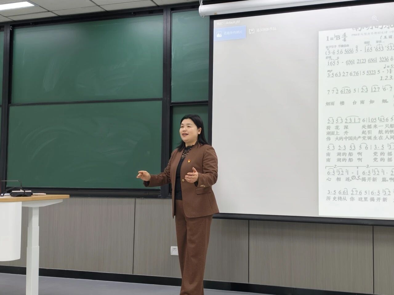 培训现场,北京榜样、志愿讲解员邢秀花老师声情并茂开展示范教学,逐首拆解《没有共产党就没有新中国》《不忘初心》等16首经典曲目,从激昂节奏、铿锵气势到温情绵长,层层讲解。气息把控、情感表达、领唱互动等技巧,在一遍遍示范与跟唱中传递,教室里嘹亮歌声交织成青春与信仰的交响。“每句歌词都藏着故事,每段旋律都承载力量。”志愿者的感慨道出心声,他们更明晰使命:不仅是讲解员,更是红色精神传声者,让观众在歌声中触摸历史温度。