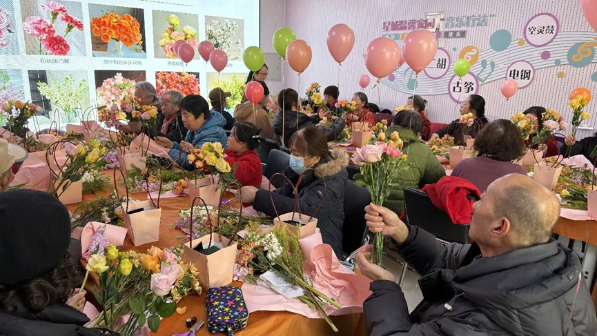 1月22日,房山区星城街道温馨家园组织50名残疾朋友开展“指尖花艺·点亮生活”创意插花活动。活动以香薰疗愈拉开序幕,帮助大家放松身心、舒缓压力,在静谧中积攒创作灵感。花艺教学环节,老师细致讲解花材特性、保鲜方法与美好寓意,并分享实用养花技巧,内容通俗易懂、贴合日常。在指导下,大家动手将花材制作成各具特色的花艺作品,现场交流互动频繁,气氛温馨。