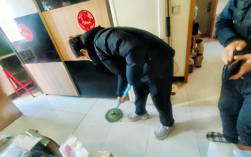 为减少老人财产损失,工作人员立刻将壁橱内的物品搬出整理,同时联系社区物业,协调专业维修人员到场。为从根源上解决渗水问题,物业专业人员对渗水点位进行水泥封补,细致做好防水处理,确保后续不再出现渗水情况。考虑到王大叔独居生活、行动不便,社区工作人员帮助擦拭壁橱内的积水,清理地面瓷砖污渍,将老人家中卫生打扫干净。王大叔心中满是感动,工作人员承诺:“大叔您放心,社区就是您的后盾,只要您有需要,随时给我们打电话,我们随叫随到。”一句承诺,一份担当;一次帮扶,一片温情。