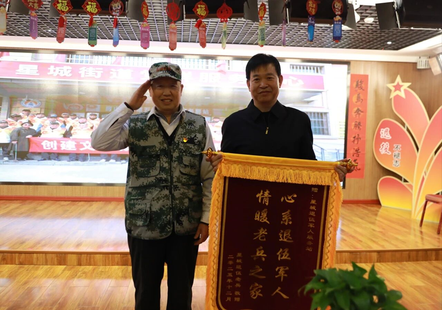 近日,星城街道退役军人服务站收到一份特殊的礼物:一面印着“心系退伍军人 情暖老兵之家”的鲜红锦旗,与一封情真意切的感谢信,由退役军人代表送到服务站站长手中。这份朴实而真挚的认可,满含着老兵们对服务站长期以来贴心服务的感激之情。