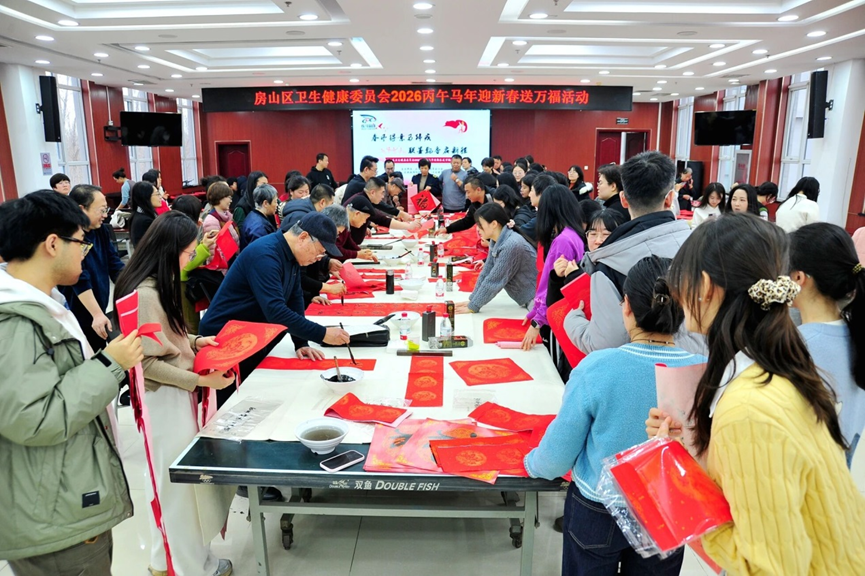 为弘扬中华优秀传统文化,营造喜庆祥和、健康向上的节日氛围,1月30日下午,由房山区卫生健康委工会主办、房山区疾控中心(监督所)协办的“春风得意马蹄疾,联墨飘香启新程”迎新春送万福主题活动在区卫健委201会议室举行。