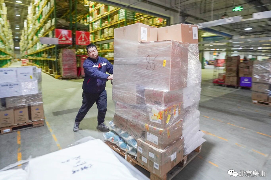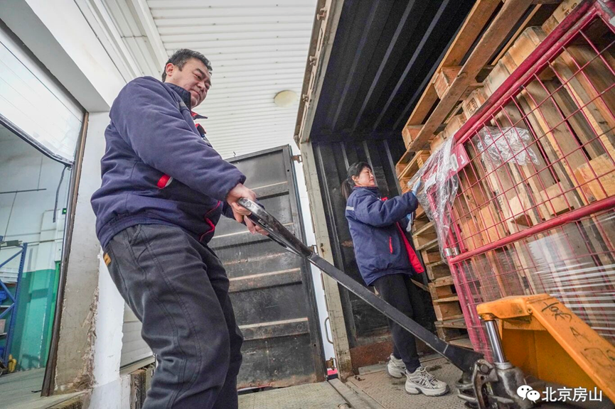 二十多分钟后,配送车稳稳抵达窦店折扣超市。朱师傅一边打电话通知收货,一边帮着店员卸货、清点,节奏紧张却有条不紊。“我家的年货?不急,等到二十八九再备也不迟。”他笑着说,“先得让大伙儿都能买上。”货卸完,他还要把店里周转用的笼车、托盘装回车里带走。这些载具如同血管,必须在库房与门店之间持续周转,节日的供应才不会中断。