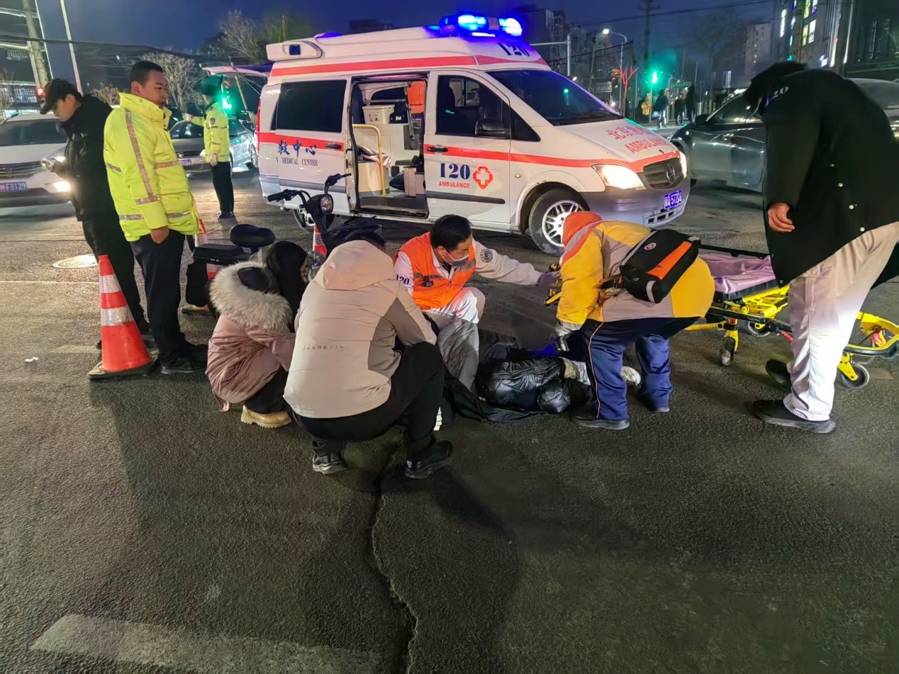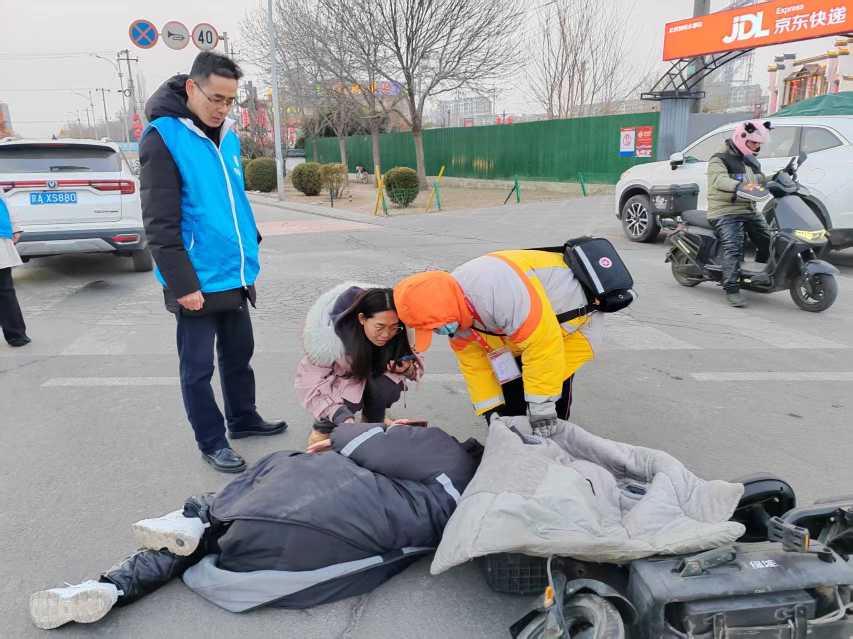 无独有偶,长阳中队黄辛庄路口发生车辆碰撞事故,引导员田雪影、靳吉宏、禹春霞迅速行动,一边安抚伤者情绪、用挡风帘为伤者御寒,一边疏导交通维护秩序,全程守护直至救护车抵达,用快速响应为生命护航。