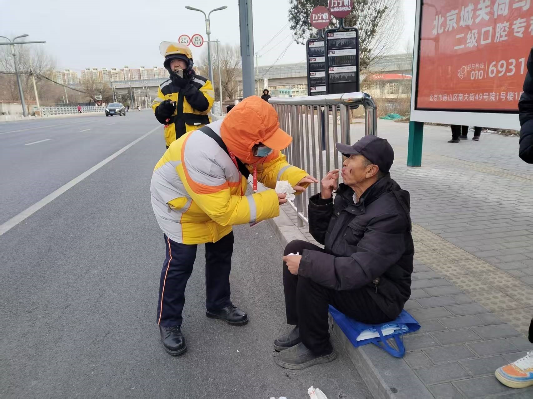 2月6日上午,房山中队引导员崔连英在万宁桥公交站值守时,偶遇老人与外卖员发生碰撞倒地。她第一时间上前查看,凭借急救知识细心询问老人身体状况,耐心联系家属,并贴心搀扶老人到路边落座保暖。十余分钟家属赶到后,崔连英主动协调化解纠纷,待事情妥善解决,早已过了下班时间。