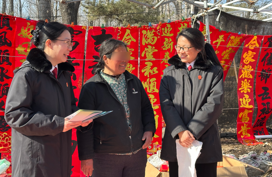 在熙熙攘攘的人群中,房山法院长沟人民法庭的法官们穿梭其间,为大家送上了一份特别的“法治年货”。