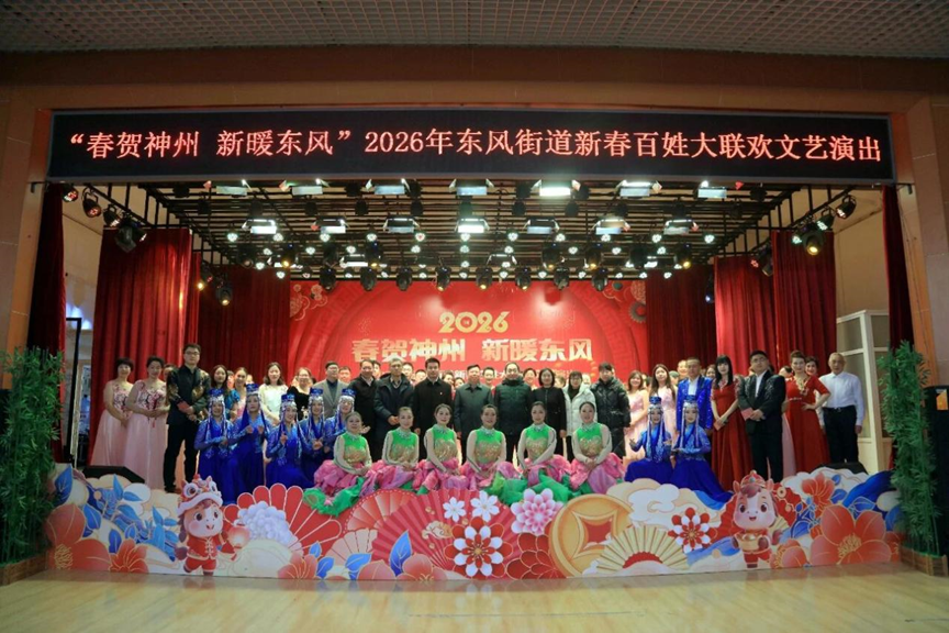 灵蛇献瑞辞旧岁,骏马奔腾迎新春。在新春佳节即将到来之际,为丰富辖区居民的精神文化生活,营造喜庆祥和的节日氛围,2月4日立春,东风街道在温馨家园举办“春贺神州 新暖东风”2026年新春百姓大联欢文艺演出。
