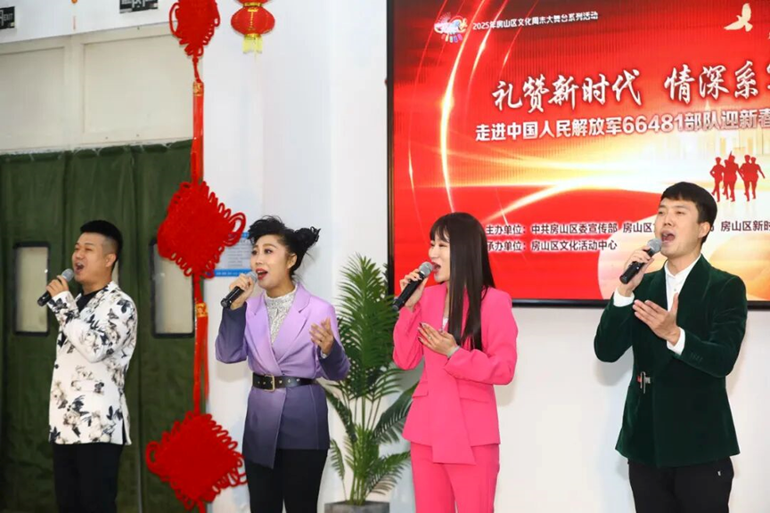 军歌嘹亮迎新春,军民同心话深情。在2026年新春佳节即将来临之际,房山区文化周末大舞台新春慰问活动走进中国人民解放军66481部队,以“礼赞新时代 情深系军营”为主题献上专场演出。文艺工作者们带着房山区人民对子弟兵的崇高敬意与真挚祝福,用精彩纷呈的节目为官兵们送上了一场视听盛宴,共叙军民鱼水深情,共度欢乐祥和的美好时光。