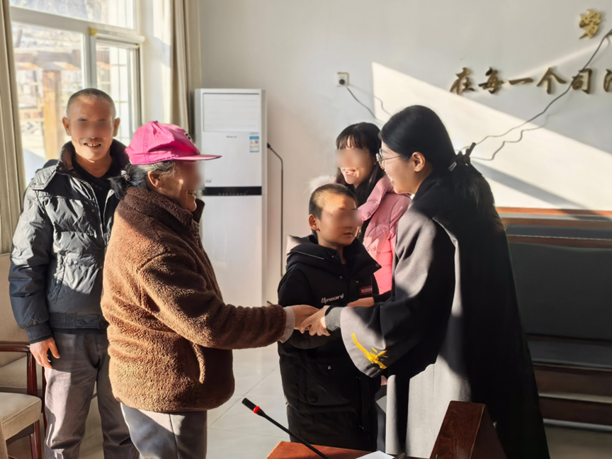 “姜法官,感谢您耐心解决我们的事。今天,我还特意把孙子带来了,让他感受一下法律的权威,从小有尊崇法律的意识。”任某老两口握着北京市房山区人民法院河北人民法庭副庭长姜婕的手表达感谢。
