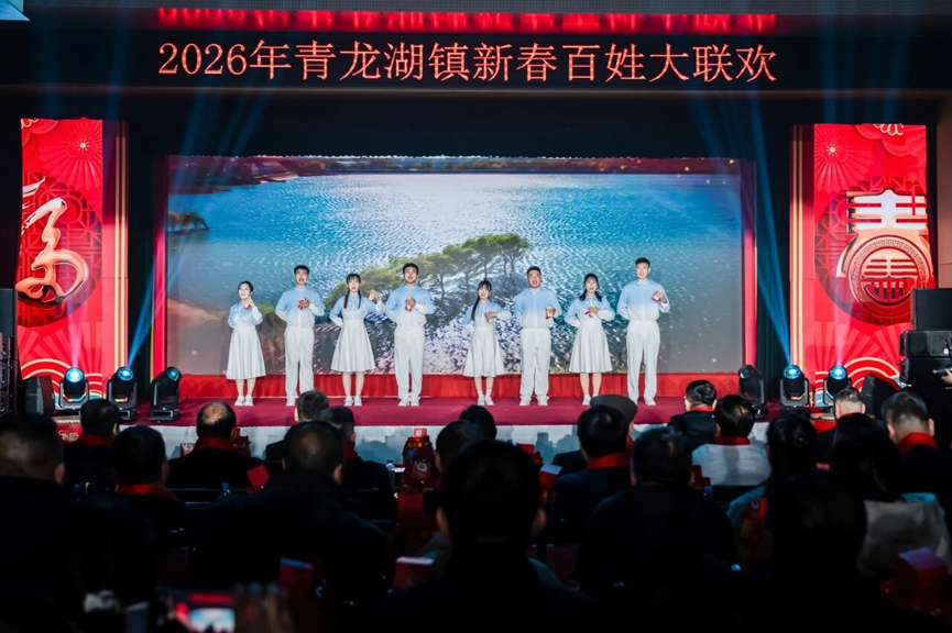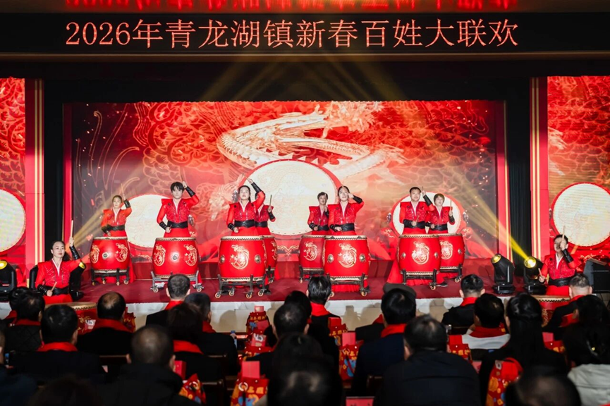 鼓韵声声迎金马,湖韵悠悠启新程。2026年青龙湖镇新春百姓大联欢在镇机关汪静、晋隗超《幸福中国一起走》的豪迈歌声中圆满落幕!让我们带着今天的美好与温暖,带着新春的祝福与期盼,在新的一年里,同心奋进、笃行实干,共赴青龙湖镇的美好新程!