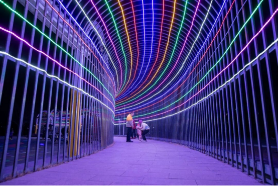 岗南路护坡墙复用城市剪影灯饰,一路璀璨、一路惊喜。其余点位则在利旧基础上适当新增新式灯具,兼顾颜值与节约。