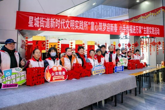 为弘扬中华优秀传统文化,营造喜庆祥和、文明和谐的节日氛围,星城街道新时代文明实践所与第六社区新时代文明实践站共同举办“童心筑梦迎新春 小手传福进万家”活动,以笔墨传情、以文明聚力,将最真挚的新春祝福送入千家万户。
