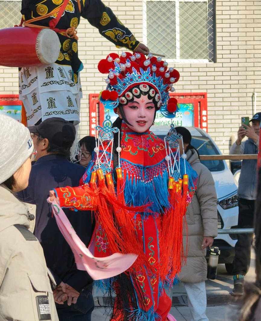 上午10时,随着一阵激昂的锣鼓声,高跷表演队伍从河北村村委会正式出发。26位身着传统戏服的高跷传承人脚踩五尺五的木跷,或腾挪跳跃,或列队变换,将“公子”“坨头”“渔翁”“丑鼓”等角色演绎得惟妙惟肖。