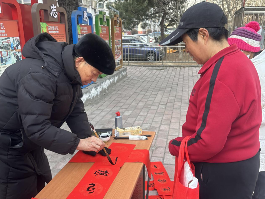 田家园社区特邀书法老师与书法爱好者,开展“写福字、赠对联”新春送福活动。活动现场墨香四溢,书法老师与爱好者们认真书写,福字饱满圆润,对联工整优美,满载对美好生活的向往。此次活动共为400余位居民送上祝福,让温情暖意弥漫整个社区。