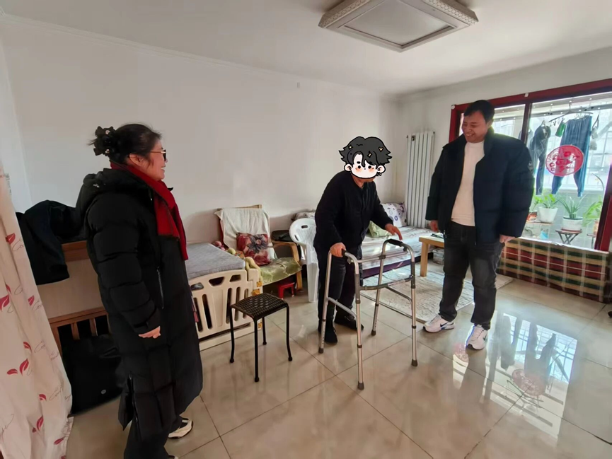 徐叔叔是一位残障人士,行动不便且伴有多种健康问题。社区残疾人专职委员在得知徐叔叔搬回的消息后,立即与网格员组成专属服务小组,第一时间前往徐叔叔家中进行入户走访。面对老人腿脚无力、行走不稳、易发生摔倒危险,同时伴有大小便失禁、日常起居极为不便的实际情况,工作人员看在眼里、记在心上。为切实解决老人急难愁盼问题,社区积极对接相关资源,为徐叔叔申请助行器,有效改善其行走条件、降低摔倒风险;针对大小便失禁的生活困扰,贴心申请护理用品,切实提升老人日常生活舒适度与尊严感。服务过程中,工作人员多次上门沟通需求、动态调整服务内容,用耐心、细心和责任心为老人提供全方位保障。