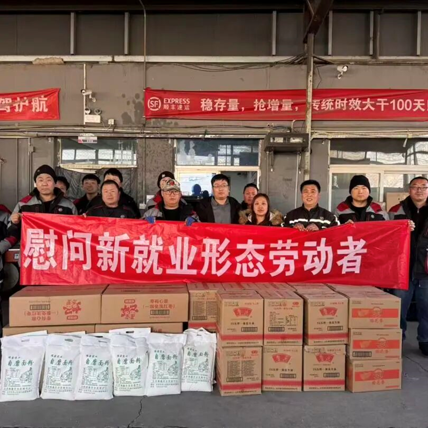 近日,房山区城关街道总工会面向辖区一线职工群体、困难职工以及新就业形态劳动者开展2026年“两节”期间走访慰问活动。城关街道工会主席带队先后走访北京燕顺实业有限责任公司、北京朗德金燕自动化装备股份有限公司、美团城关站点及北京顺丰速运城关业务部,为工作在岗位上的一线职工和新就业形态劳动者送去慰问品,感谢他们不辞辛苦的工作,坚守岗位,为群众的便利生活辛勤付出,同时关切叮嘱职工工作中要注意交通安全,注意身体健康,做好冬季防寒保暖措施。北京顺丰速运城关业务部为感谢工会组织的关心,特地赠送一面锦旗。